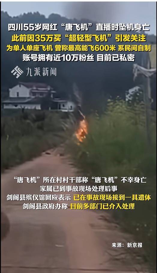今年9月,四川一男子驾驶“三无”飞机直播时坠亡,上千观众目睹。老周称该惨剧未震动相关群体,民间“三无”飞机生产销售仍在继续。