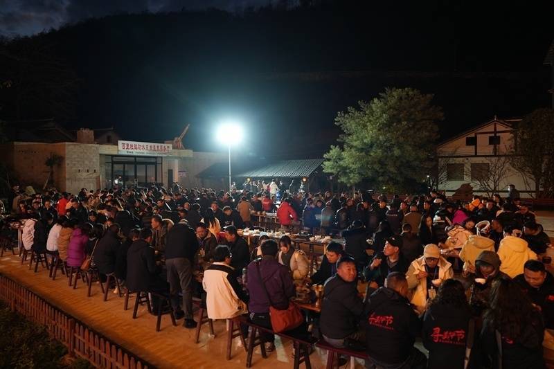 长桌宴上游客们齐聚一品尝美食。